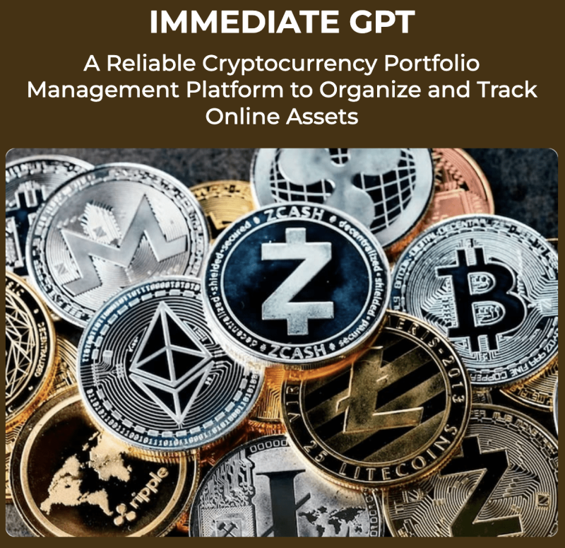 The Immediate GPT website describes the platform as a reliable cryptocurrency portfolio management system to organize and track online assets. The platform reportedly has simple trading features.