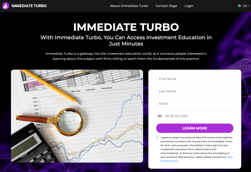 Immediate Turbo functions as an online platform, serving as a link between individuals seeking insights into investments and education companies offering instruction in this domain.