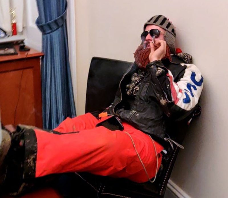 He smoked pot in an office assigned to Sen. Jeff Merkley (D-Ore.), “paraded” through the Capitol crypt with other rioters, taunted law enforcement officers, posed for photographs on a Capitol Police motorcycle outside the building, and then raved about the attack in media interviews and social media posts, prosecutors said.
