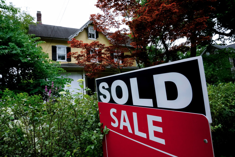A sale sign stands outside a home in Wyndmoor, Pa., in June 22, 2022.Matt Rourke / AP file