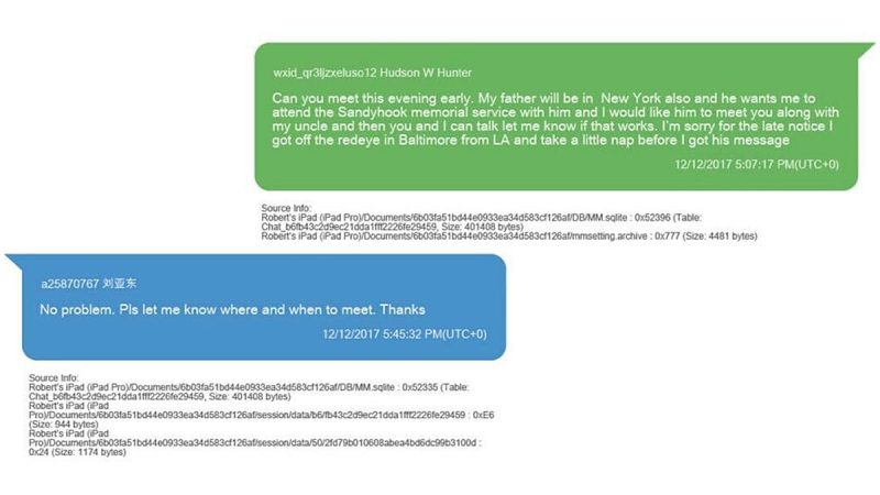 ‘Can you meet this evening early,’ Hunter Biden asked Yadong Liu, CEO of CEFC Global Strategic Holdings in a poorly punctuated text message the evening of Dec. 12, 2017.