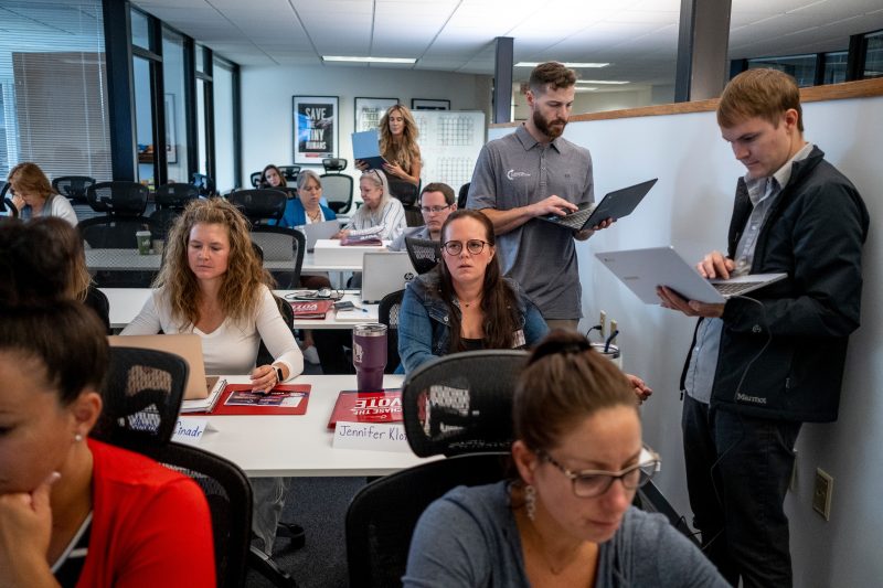 At a Turning Point Action office in Waukesha, Wis., in June, about three dozen newly hired full-time community organizers got together with poster boards and scented markers to brainstorm techniques to meet their targeted neighbors. They were each assigned a few hundred registered Republicans who didn’t vote in recent presidential elections, aiming to turn them out for Trump.