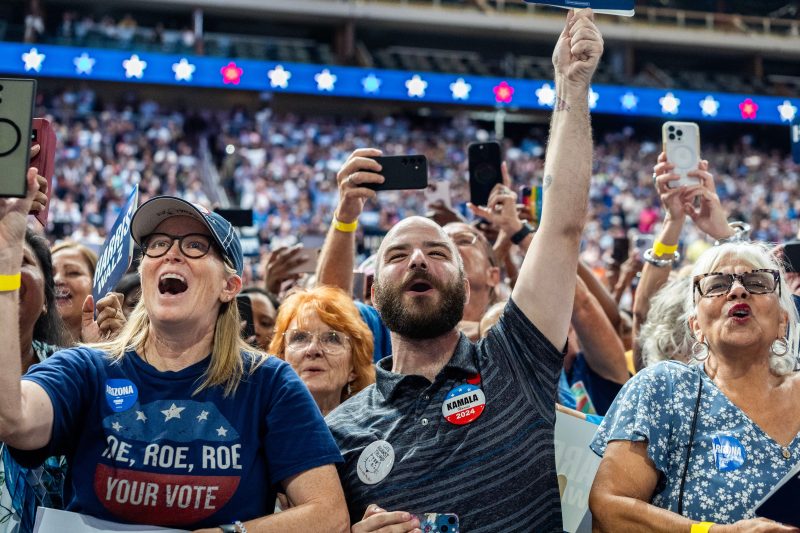 In a string of events in battleground states across the country this week, Harris and Walz riled up Democratic supporters with similar one-liners, calling the patchwork of abortion restrictions in various states “Trump’s abortion bans” and promising that “we’ll fight for a woman’s right to choose.” The mention of reproductive health care in any fashion stood in stark contrast to the message from the Republican ticket. Trump’s running mate, Sen. JD Vance (Ohio), held campaign events alongside those by Harris and Walz in Pennsylvania, Michigan and Wisconsin and made little mention of abortion or reproductive health care.