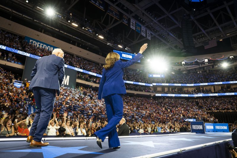 The decision to hold the event in Wisconsin also reflected the truncated timeline for Harris’s campaign for the presidency, which began after Biden abruptly ended his reelection bid on July 21. Both Harris and Walz have noted the dwindling number of days they have to win over voters and pledged to campaign aggressively over the coming weeks. They also sought to undercut Trump’s fixation on crowd size by simultaneously filling two arenas while drawing a sharp contrast with the Republican convention in the same venue.