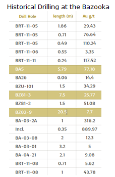 The 20 drill targets identified at Bazooka total approximately 10,000 meters of drilling data. Using the Televiewer data the Company was able to identify four possible mineralized vein and schistosity structures that are striking northeast, west northwest, southwest and north-northwest. This resulted in the identification of two main families of mineralized veins, Family A and Family B. Family A veins predominantly strike at N042º and dip at 35º-40º, while Family B veins strike at N230º and dip at approximately 63º.
