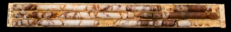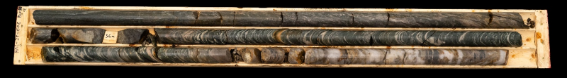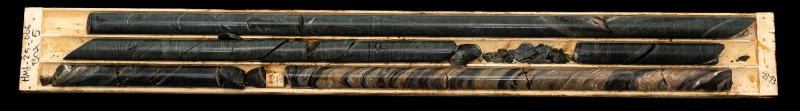 Figure 2: Sequence of drill core box photos showing the entire shear zone structure in DDH HML025-006 (14.33m to 87.00m) |