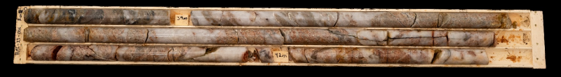 Drill holes show multiple occurrences (up to 51.40m core length) ofavariably mineralized shear zones, in granitic/felsic intrusions, and massive to semi massive quartz veins (Figure 1 and 2) in seven of the nine holes drilled.