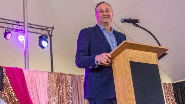 STEVENS POINT, Wis. — Doug Emhoff was late to learn his life had changed, he told an enthusiastic audience of Democratic volunteers Saturday as...