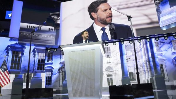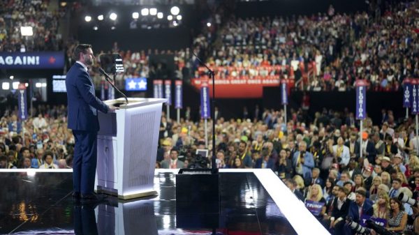 MILWAUKEE — Donald Trump’s running mate, Sen. J.D. Vance of Ohio, recounted his hardscrabble Ohio upbringing and his post-Sept. 11 military service as he...