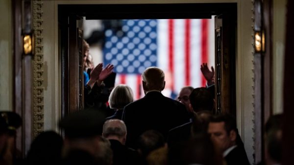 As political leaders and guests shuffled into the U.S. Capitol for President Biden’s high-stakes State of the Union address Thursday night, overhead views of...