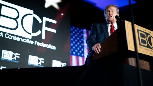 COLUMBIA, S.C. — Former President Trump sought to appeal to Black voters on Friday night in South Carolina by repeatedly citing the 91 felony...